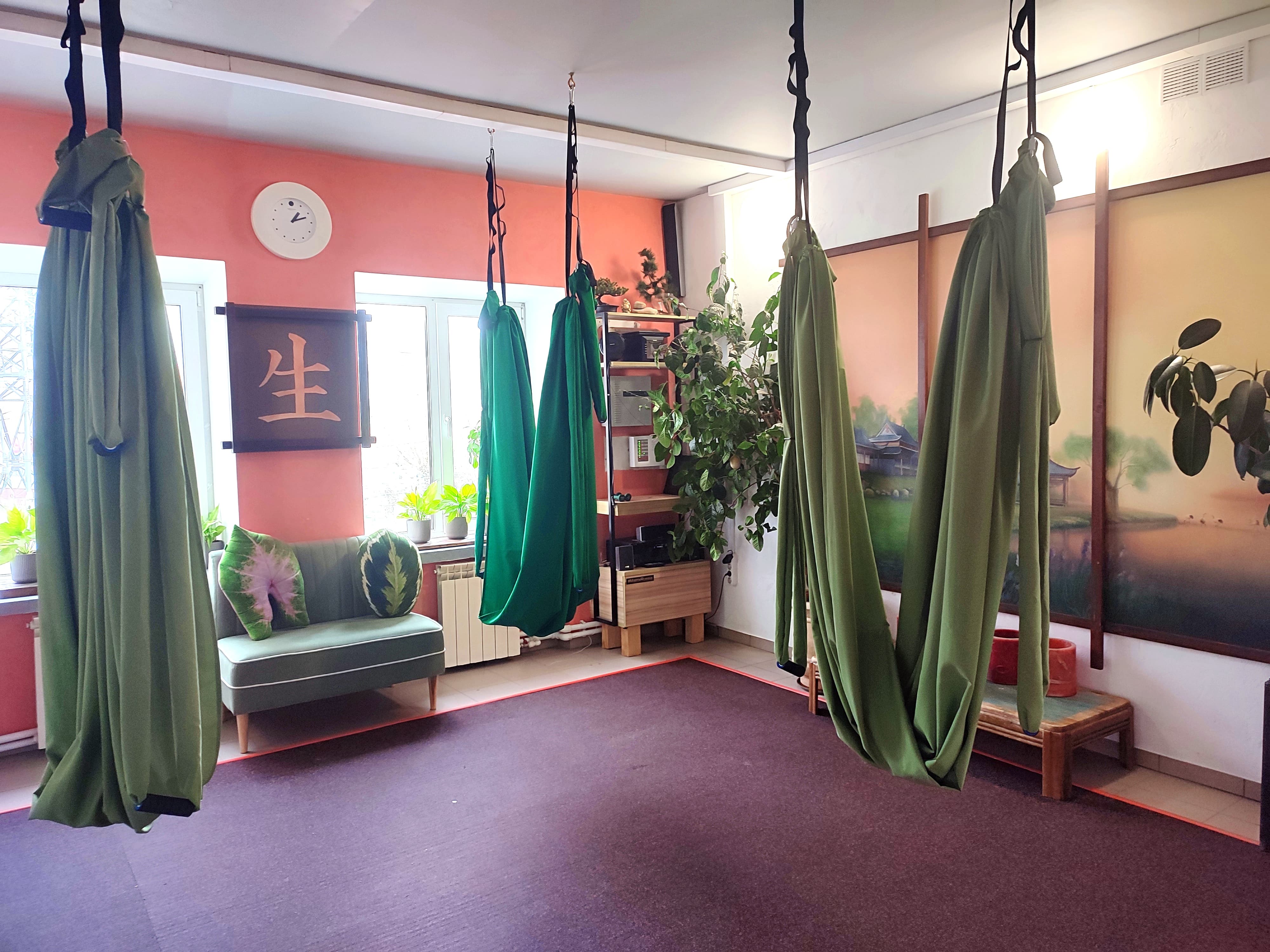 Вместимость: йога - 4 человек, йога в гамаках - 4 человек.